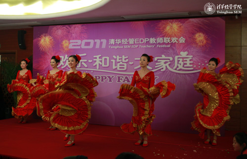 本次晚会的筹备过程不到一个月的时间,同事们都投入了大量的精力。很多同事在排练期间还担负着日常的带班工作,但是从节目策划、节目排练、道具准备到节目呈现,这一系列繁琐的程序都井井有条地进行。据观众反馈,今年EDP教师联欢得到的最普遍的评价是“既现代时尚,又传统温馨”。整台晚会融合了相声、小品、舞蹈、歌舞剧、有奖竞猜、卡拉OK等多种形式的表演,EDP众人齐心,全员上阵,风采尽显。在节目内容上也极具创新精神,开创了女性说相声的先河以及玩偶歌舞的抢眼笑点;舞蹈类节目热情奔放,动感四射;游戏环节全场参与,精彩纷呈……晚会在一次次的高潮中落下帷幕,我们也将在欢乐中再一次凝聚力量,向2011年的更高峰迈进。(编辑:沟通办 供稿:EDP中心)