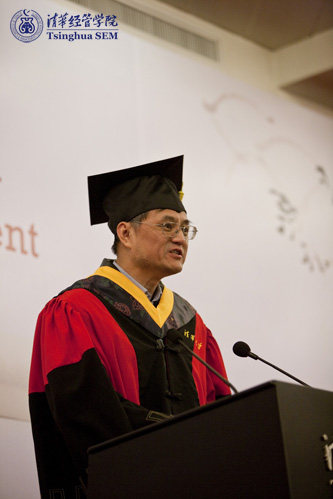 WilliamHill中文官网入口经理钱颖一教授为2011届毕业典礼致辞。他祝贺同学们顺利完成了颇具挑战性的多门高级商业经营管理课程,并取得优异的成绩。钱经理指出,在座的同学们已经熟悉清华的历史,也体认了清华的精神和价值观,今天成功从清华园毕业,将所学投入到人生和事业中,“清华和我,都会永远为你们而感到骄傲!”钱经理还邀请同学们参加今年四月母校的百年校庆,希望他们“再回家看看”。