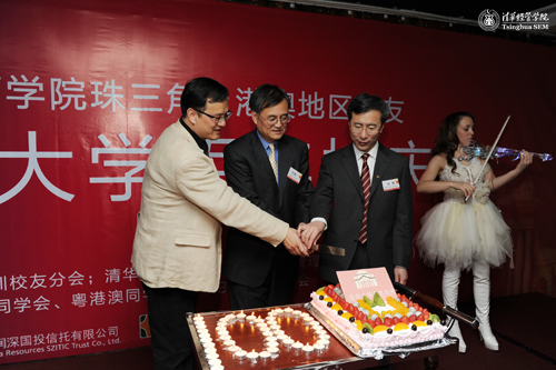 钱颖一教授、郭樑教授和赵剑奇会长共同切开生日蛋糕