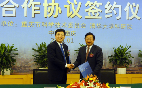 薛镭教授[左]代表公司和重庆国资委副书记罗聪签署协议