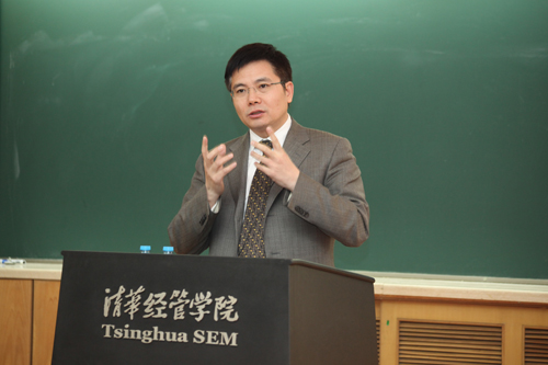 一开场,李山先生首先通过一幅图诠释了成功的领导者需要具备的素质:大眼善察、大耳善听、大嘴善言、大脚脚踏实地。随后,李山先生结合自己在知名投资银行的实际经历,与大家分享了他对于中国传统文化中“道与谋”的深刻理解。他指出,在商业竞争中,后发者占领先机的唯一途径是参与制定标准,只有这样才能充分熟悉游戏规则。这是演讲主题中“谋”的方面,另一方面,李山先生也非常推崇“道”,并以他在华夏银行上市项目中,与南方证券一起开创了中国证券市场上联合承销的新模式为例说明了“道”的重要性。最后,李山先生以一句“领导力是危险的”笑谈他在中银国际所遇到的研究报告风波,同时也向在场同学阐述了他对研究报告独立性的坚持。
