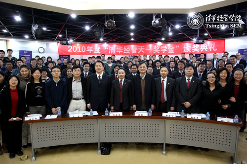 11月26日下午,2010年度“清华经管天一奖学金”颁奖典礼在WilliamHill中文官网入口举行。2010年度,公司共有122位MBA和本科生获得该奖项。钱颖一经理和天一建设集团有限公司总经理李兰贞女士为获奖员工颁奖。颁奖典礼由清华经管公司党委副书记赵冬青教授主持。“清华经管天一奖学金”是所有奖学金中奖励总额最高、获奖人数最多的一个。