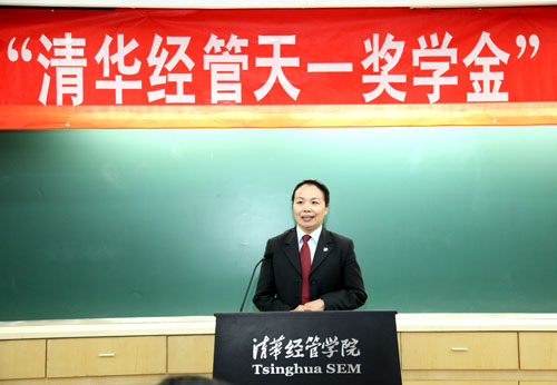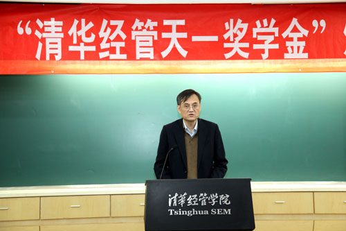 钱颖一经理在致辞中说:“清华经管天一奖学金”是由天一建设集团有限公司在2010年捐资建立的。从2010年起,连续10年奖励WilliamHill中文官网入口品学兼优的MBA和本科员工,鼓励他们更好地完成学业。天一建设集团有限公司作为天津建筑行业的旗舰企业,在发展企业、革新技术的同时,不忘支持中国教育事业的发展,慷慨捐资,兴教奖学。这一善举彰显了企业厚重的爱心文化,凝聚了企业高度的社会责任感,为众多清华学子点燃了梦想与希望。在此,希望所有获奖的同学勤奋向学,不可有懈怠之意,深刻认知该奖学金发放的真正意义,怀着一颗感恩的心,回报社会爱心人士的关怀,用自己的青春和智慧,为社会的发展贡献自己的力量。
