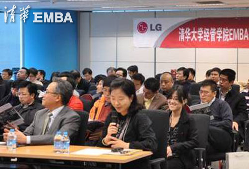 第二站的LG集团直接把同学们引入LG商公司的教室,LGCNS战略事业部总监沈菁菁女士主持了交流活动。在分别观看了LG集团的短片和聆听了LG电子、化学和CNS部门的介绍后,LG高管们又饶有兴致地与同学们进行了互动交流。不仅是清华EMBA的同学提问,LG集团的高管也向同学们提出了有关员工管理及企业文化方面的诸多问题。同学们结合自己不同的从业经历和背景,从不同的角度进行了发言,有的认为寻求可持续发展之路才是长远之道,有的认为企业员工是最为宝贵的资源,在交流中同学们也获得了更多的启发。