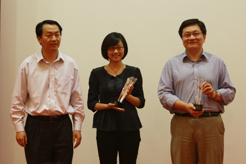 经理助理高建教授为宜信、网讯公司等赞助公司颁发了奖杯。MBA教育中心负责老师、赞助商代表分别为2010级获奖MBA新生颁发铜紫荆奖、银紫荆奖。金紫荆奖由高建教授、高旭东教授、MBA教育中心常务副主任毛东辉老师颁发。