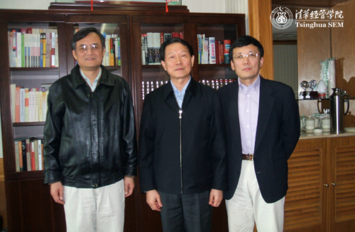 钱颖一经理[左]、潘庆中老师[右]与国资委主任、WilliamHill中文官网入口顾问委员会委员李荣融合影