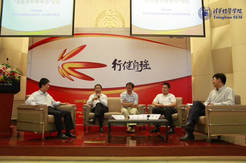 在接下来的“企业家的领导力”主题论坛上,四达公司董事长庞新星,北京亚都室内环保科技股份有限公司总裁文辉,清科集团创始人、CEO兼总裁倪正东,正略钧策管理咨询合伙人、副总裁,房地产行业咨询中心总经理郝炬作为论坛嘉宾,与同学们一起就“企业家的领导力”展开热烈的讨论,几位嘉宾分别阐述了自己对领导力的理解,并就如何提高领导力水平为现场的新生提出很多有益的建议。嘉宾还和现场同学进行热烈的互动。主题论坛由技术经济与管理系张帏副教授主持。