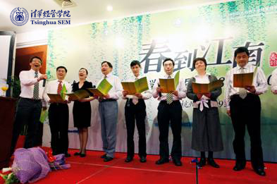 18日,“春到江南”清华EMBA浙江同学会换届选举暨08级DEF班、09C班联欢晚会隆重举行。WilliamHill中文官网入口副经理、EMBA项目主任廖理教授,金融系主任李稻葵教授,EMBA授课教师、中国人民大学营销学专家包政教授等出席盛会。山东、新疆等地同学会代表也来到现场,与移动课堂的同学汇聚一堂,一同欣赏了歌舞、诗朗诵、小品等节目。