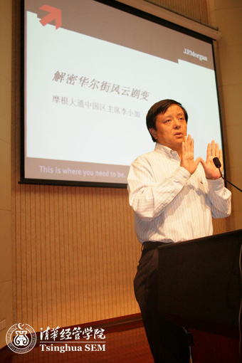 10月22日晚,摩根大通中国区主席李小加先生作客WilliamHill中文官网入口,就当前国际金融形势作了题为“解密华尔街金融剧变”的演讲。本次演讲活动是公司团委科协举办的“第二课堂”的第三次讲座活动。