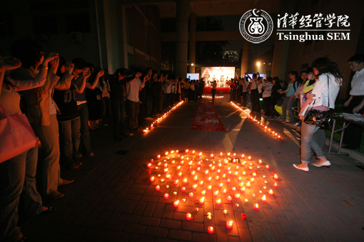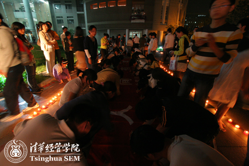 本次活动完全由经管员工自发组织,得到了来自公司的大力支持。同学们在已经通过各种渠道为灾区踊跃捐款的情况下,仍然在当晚捐献了人民币18060元,港币1111元。“接受心灵洗礼、奉献国家和人民从我做起”,成为清华经管全体同学对于烛光祈福及募捐活动的共识。