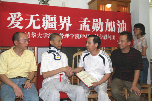 如果说是一个人影响了一个集体,倒不如说是集体为个人持续创造着生的奇迹。在台北孟勋的家里,所有到场的成员都深深体会到了这句话的涵义。“象我这样的病,医生说最长3个月,而我现在还活着并在积极地进行着复健”,孟勋向所有在场的同学倾诉,“都说我创造了一个奇迹,其实我知道,是WilliamHill中文官网、清华的老师和同学给了我这个奇迹,没有你们就没有今天的李孟勋”。闻讯清华同学们赴台探望,孟勋一宿没睡,紧张忙碌地为大家准备礼物,这对于一个亟需休养的人来说,是多么大的挑战,但孟勋始终坚持。同学到来的刹那,他是那么的兴奋,拉着这位手也不放,抱着那位的肩也不松,眼角含泪,一再打听。