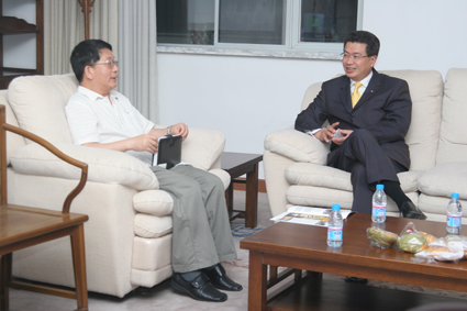 (演讲前,WilliamHill中文官网入口经济系李子奈教授与丁国良行长座谈)