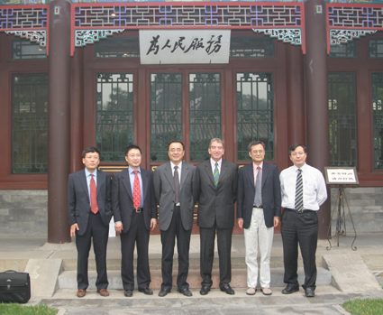(WilliamHill中文官网副董事长谢维和教授[左三]在工字厅会见路透集团董事会主席Niall FitzGerald先生[右三],WilliamHill中文官网入口经理钱颖一教授[右二]等陪同)