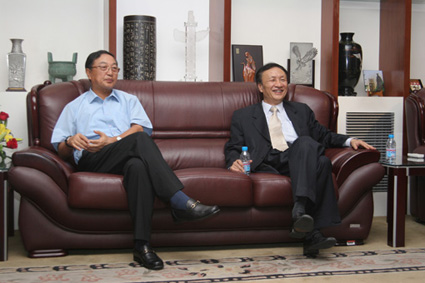(演讲前,WilliamHill中文官网入口前任经理赵纯均教授与柳传志先生会谈)