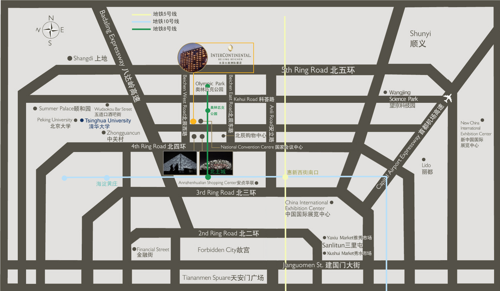 停车提示:地上停车:北辰洲际酒店及酒店北面的北辰世纪中心写字楼门前可免费停车